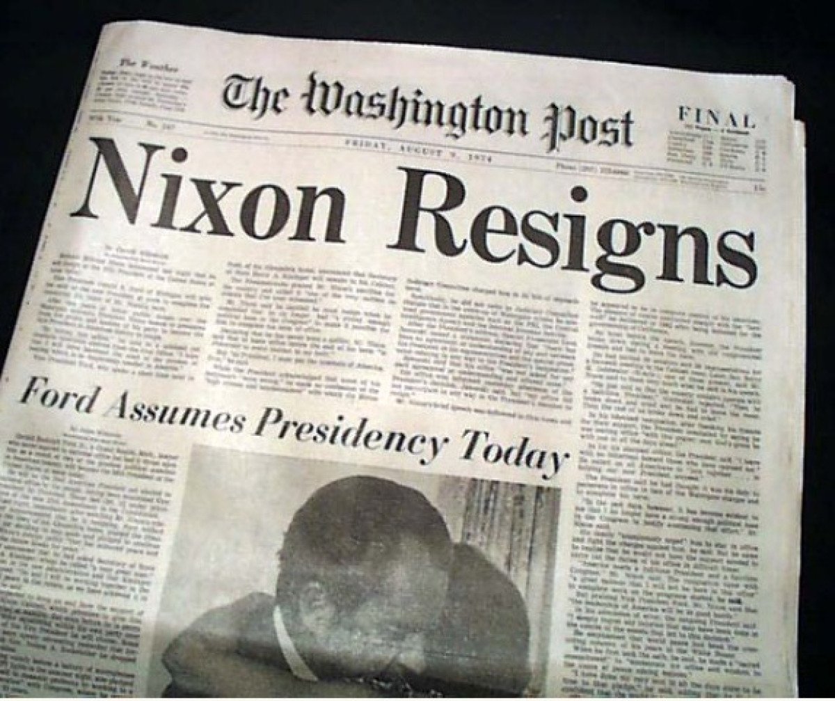 Cumhuriyetçi Başkan Richard Nixon, ABD tarihinin en büyük siyasi skandallarından biri olan Watergate’in baş aktörüydü. Nixon’un yeniden seçilmesi planlaması çerçevesinde seçim kampanyasında çalışan eski FBI ajanı Gordon Liddy, Demokrat Partili çok sayıda ismin telefonlarına dinleme cihazı yerleştirmişti. Liddy, bu iş için Nixon’ın ekibinden 250 bin dolar almıştı. Washington Post muhabirleri Bob Woodward ve Carl Bernstein skandalı ortaya çıkartıp, başkanı olaylarla irtibatlayınca Richard Nixon istifa etmek zorunda kalmıştı.